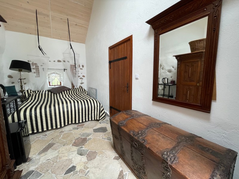 POKÓJ CZTEROOSOBOWY, Z ODDZIELNYM WEJŚCIEM Z PODWÓRKA, PRYWATNĄ ŁAZIENKĄ I KOMINKIEM. DWA ŁÓŻKA PODWÓJNE.